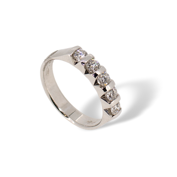 Anello Riviera da donna in oro bianco 18 kt con diamanti naturali da 0.61 carati VS G – Eleganza senza tempo firmata Idee Preziose dal 1987 Linee pulite e luminosità intensa definiscono questo anello Riviera da donna in oro bianco 18 kt, impreziosito da diamanti naturali per un totale di 0.61 ct. Ogni pietra, incastonata in una montatura geometrica moderna, è selezionata per la sua purezza VS e il colore G, regalando al gioiello un’allure raffinata e senza tempo. Materiale: Oro bianco 18 kt Pietre: Diamanti naturali Caratura totale: 0.61 ct Purezza: VS Colore: G Taglio: Brillante Peso: 4,90 gr Genere: Donna Brand: Idee Preziose dal 1987 Stile: Riviera classica Occasioni: Anniversario, regalo importante, promessa L’essenza della raffinatezza racchiusa in ogni dettaglio.