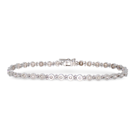 Bracciale tennis in oro bianco 18 kt con diamanti naturali G VS – Idee Preziose dal 1987 Bracciale tennis raffinato in oro bianco 18 kt, impreziosito da diamanti naturali G VS incastonati in castoni tondi dal design moderno ed elegante. Un’alternativa sofisticata al classico tennis, perfetta per chi desidera un gioiello ricercato e luminoso, simbolo di stile senza tempo. Caratteristiche tecniche: Materiale: Oro bianco 18 kt Pietre: Diamanti naturali Colore: G Purezza: VS Tipo di bracciale: Tennis fantasia Chiusura: Scatto di sicurezza con otto Lunghezza: 18 cm (su richiesta) Genere: Donna Brand: Idee Preziose dal 1987 Stile: Eleganza moderna Occasione: Cerimonia, anniversario, regalo speciale Un bracciale che unisce eleganza e originalità, pensato per risplendere in ogni occasione.