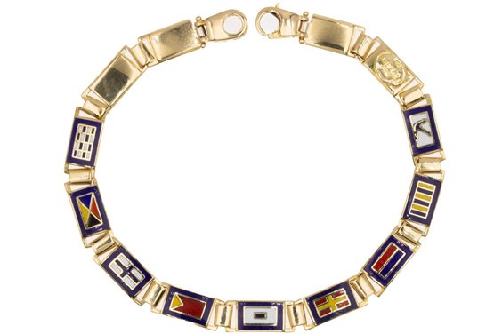 Bracciale da uomo in oro giallo 18 kt smaltato – 16.00 g – misura 21 – Idee Preziose dal 1987 Un bracciale che unisce arte e simbolismo: realizzato in oro giallo 18 kt, questo gioiello maschile è impreziosito da smalti colorati che riproducono bandiere nautiche stilizzate (i colori sono indicativi). Ogni elemento rappresenta una passione per il mare, raccontando una storia unica al polso. Materiale: Oro giallo 18 kt Peso: 16.00 g Lunghezza: 21 cm Genere: Uomo Tipo di bracciale: Maglia smaltata con bandiere Finitura: Lucida con inserti smaltati policromi Chiusura: Moschettone Brand: Idee Preziose dal 1987 Occasioni: Regalo simbolico, anniversario, collezione personale Perfetto per l’uomo che ama distinguersi con un gioiello dal significato profondo e dallo stile senza tempo.