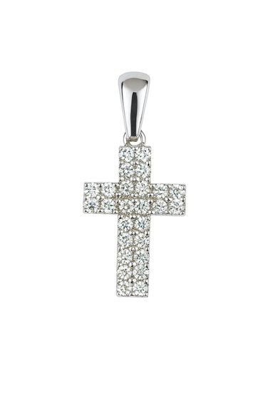 Ciondolo donna in oro bianco 18 kt con pavé di zirconi – 0.70 g – Idee Preziose dal 1987 Un raffinato ciondolo a croce interamente ricoperto da un pavé di zirconi bianchi, che dona brillantezza continua e un effetto luminoso a ogni movimento. Realizzato in oro bianco 18 kt, questo gioiello racchiude eleganza e spiritualità in un design essenziale e contemporaneo. Materiale: Oro bianco 18 kt Pietre: Zirconi bianchi Taglio: Brillante rotondo Peso: 0.70 g Genere: Donna Stile: Croce pavé moderna Occasioni: Comunione, cresima, anniversario, regalo simbolico Perfetto per chi ama i simboli classici con un tocco di luce moderna.