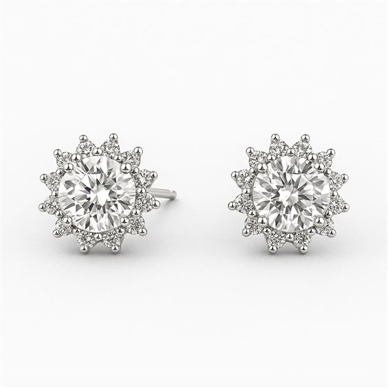 Orecchini da donna in oro bianco 18 kt con zirconi taglio brillante – 3.60 g – Idee Preziose dal 1987 Luce che incanta. Questi orecchini da donna in oro bianco 18 kt sono impreziositi da un grande zircone centrale taglio brillante, circondato da una corona di piccoli zirconi disposti a raggiera. Il design elegante e la luminosità intensa li rendono perfetti per cerimonie, occasioni speciali e serate importanti. Materiale: Oro bianco 18 kt Pietre: Zirconi bianchi Taglio centrale: Brillante rotondo Tipo di orecchino: Al lobo Chiusura: Perno con farfallina Peso: 3.60 g Genere: Donna Stile: Elegante, classico, da cerimonia Per chi cerca un tocco di luce che valorizza ogni sorriso.
