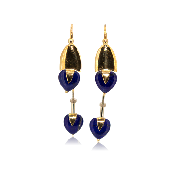 Orecchini da donna in oro giallo con pietre di lapislazzuli – 7.00 g – Idee Preziose dal 1987 Geometrie eleganti e tonalità intense: questi orecchini pendenti uniscono l’oro giallo lucido alla profondità blu del lapislazzulo, creando un connubio perfetto tra modernità e tradizione. Le forme allungate e il design articolato esaltano la brillantezza delle pietre, rendendo ogni movimento un gesto di stile. Materiale: Oro giallo 18 kt Pietre: Lapislazzuli naturali Peso totale: 7.00 g Tipo di orecchino: Pendente articolato Genere: Donna Chiusura: Amo a scatto Stile: Elegante, artistico, raffinato Un gioiello che cattura lo sguardo, pensato per donne che amano distinguersi.