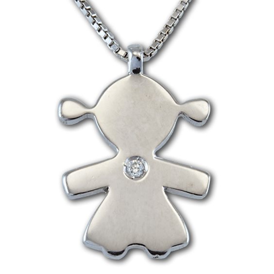 Girocollo in Oro 18kt Bianco a Forma di Bambina Diamante 0.005 G Si