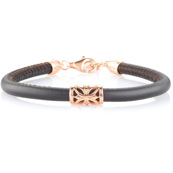 Prodotto: bracciale uomo gioielli Gerba Elegant Skin ELEGANTE SKIN 05 Bracciale Di Gerba Da Uomo Della Collezione Elegant Skin. Gioiello In Argento 925 Di Colore Rosè, Con Pelle Marrone Della Dimensione Di 4,5 Mm, Caratterizzato Da Componenti Logati Gerba. Bracciale Di Colore Marrone E Argento Rosè. Dimensioni: 19,5 Cm Regolabile. Questo Gioiello Ha Chiusura A Moschettone. Hand Made In Italy. La Referenza È Elegante Skin 05 Questo bracciale verrà spedito con Scatola Originale Gerba
