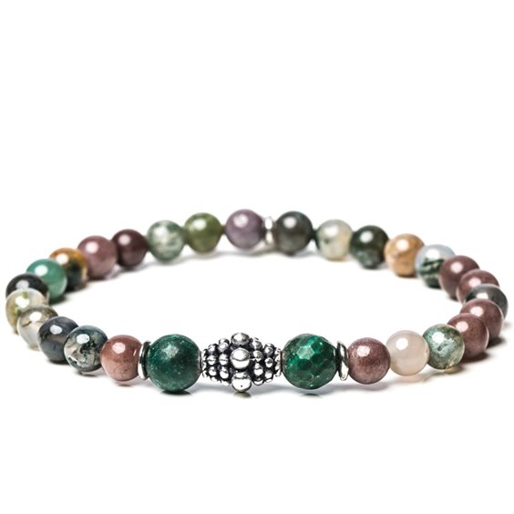 Bracciale Forest con filo elastico, realizzato a mano con Agata Indiana e componenti in Argento 925.