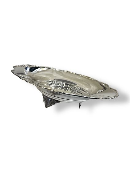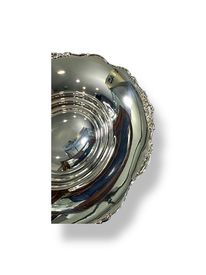 Cestello in argento 800, lavorazione artigianale fatta a mano. Peso grammi 172. Cestello liscio con bordo riportato e piedini. Dimensioni cm 22 x 22 altezza cm 6.