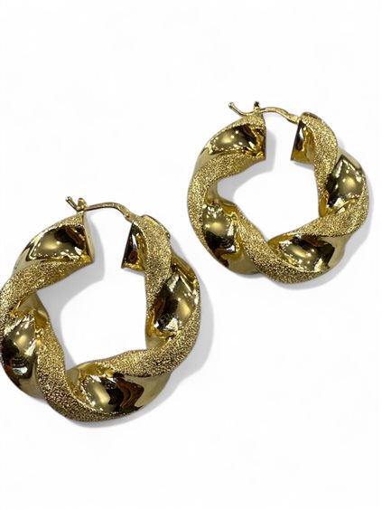 Orecchini cerchio torchon lavorazione lucida e diamantata. Diametro cm 3,5
