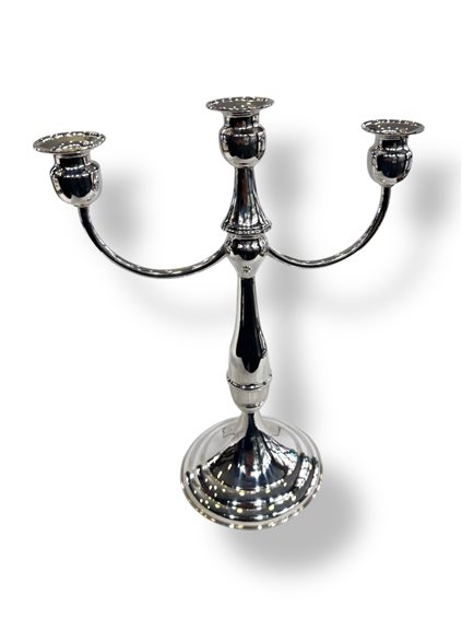 Portacandele 3 fiamme in argento 800 stile inglese. Peso g. 152 Dimensione h 30 cm.