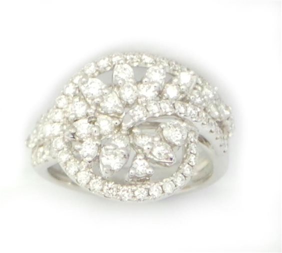 Anello in oro bianco 18 kt, con diamanti taglio brillante ct 1.02, purezza IF, colore G.