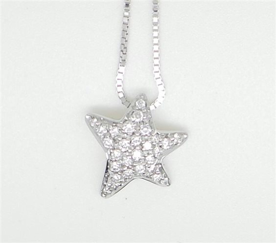 Collana in oro bianco 18 kt, con diamanti IFG 0,20 ct., lunghezza catena totale 40 cm