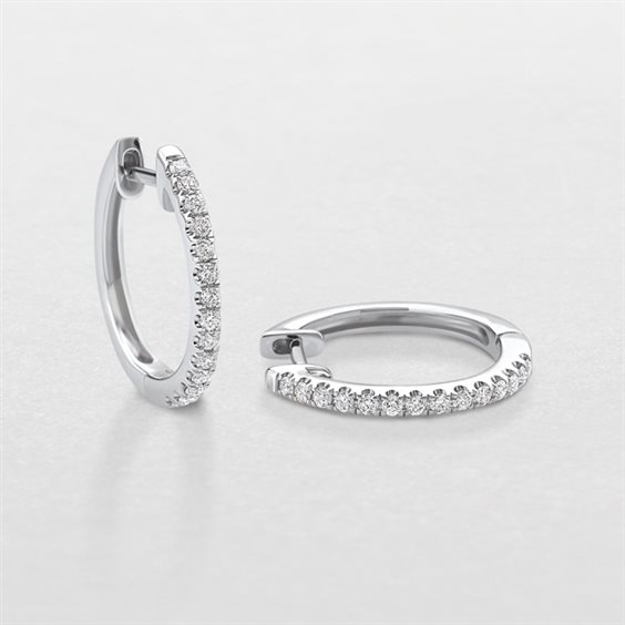 Orecchini a cerchio in oro bianco 18 ct. e diamanti taglio brillante di ct. 0.21 in totale Colore G Purezza VS