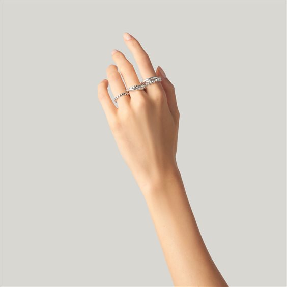 Questo anello doppio in argento e argento brunito regala tutto il fascino dell'antica fusione a cera persa, coniugando minimalismo e artigianalità realizzativa. Un anello liscio e luminosissimo ne incontra un altro col decoro Cuori, creando nuove prospettive di bellezza. Fatto completamente a mano in azienda.