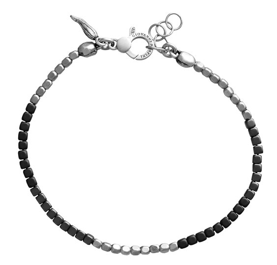 Il bracciale Dadini Grey è realizzato a mano alternando alcuni beads in argento con altri di ematite lucida e satinata. Materiali, nuove idee e tante proposte per un gioiello maschile contemporaneo. Delicata eleganza di un uomo.