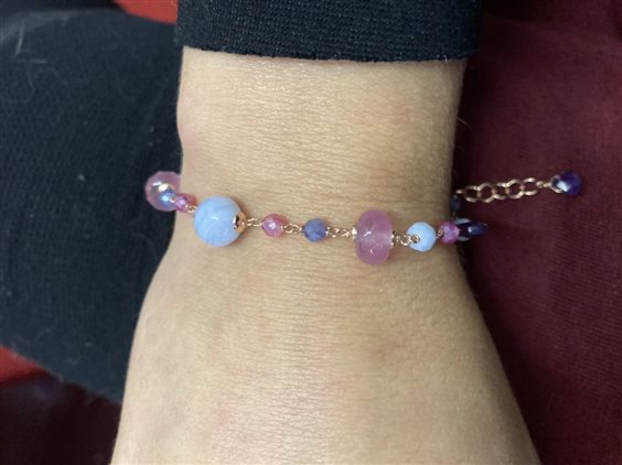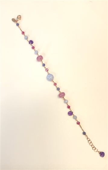 Bracciale in argento rodiato oro rosa con pietre di Ametista, Calcedonio, Quarzo fucsia, Quarzo rosa.