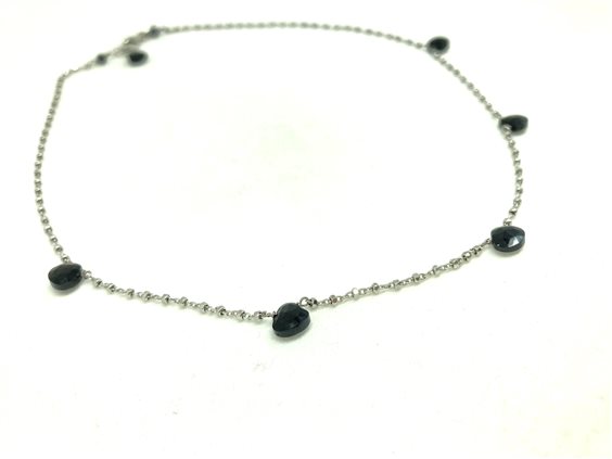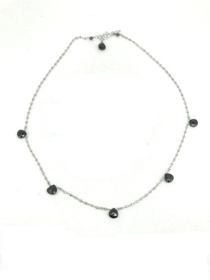 Collana in argento a rombetti sfaccettati con spinelli neri a goccia.