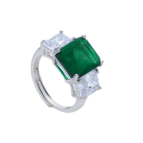 Il classico anello in argento con cristallo verde ottagonale e zirconie laterali.