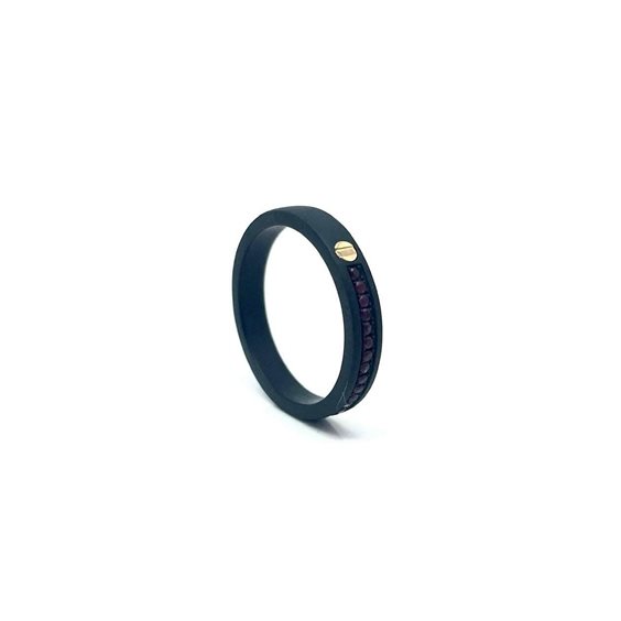 Anello in titanio con rubini ct totali 0.20 ed elemento in oro rosa 18kt.
