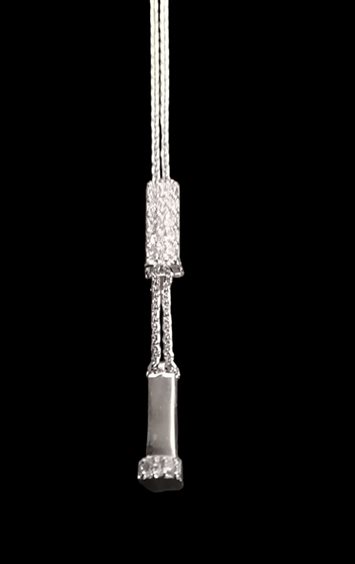 Catena in oro Bianco 18kt con doppio ciondolo a scomparsa forma fiammifero il principale full pavè di Diamanti naturali taglio brillante, ct.0,12 Colore G Purezza VS. Nel secondo ciondolo a scomparsa in Oro Bianco 18kt si puo' incidere una frase, una data per una riccorenzaspeciale.
