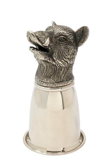 Bicchiere Gucci in alpacca ricoperto d’argento 925 – Modello cinghiale Un capolavoro di artigianato e stile firmato Gucci, simbolo di lusso e carattere deciso. Questo straordinario bicchiere è realizzato in pregiata alpacca, ricoperta in argento 925, e presenta una magnifica testa di cinghiale scolpita con incredibile realismo. Le linee cesellate a mano e la finitura lucida donano profondità e luce, trasformando questo oggetto in una vera opera d’arte da collezione. Perfetto come elemento d’arredo raffinato o come esclusivo calice da degustazione, unisce forza e eleganza in un design unico e iconico. Brand: Gucci Materiale: Alpacca rivestita in argento 925 Motivo: Testa di cinghiale Tipologia: Bicchiere decorativo o da degustazione Finitura: Lucidata a mano Un oggetto che racconta la maestria e l’eccellenza del design italiano, espressione autentica dell’eleganza firmata Gucci.
