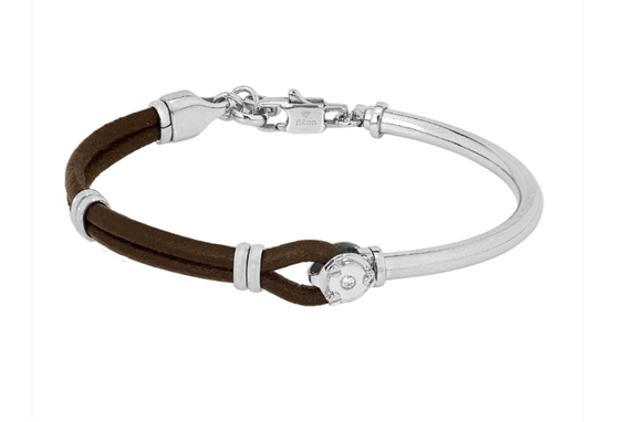 Bracciale in acciaio semirigido con cuoio marrone e Diamante Naturale (0.015 ct)