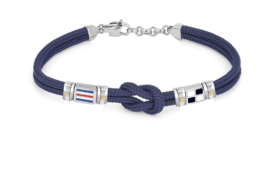 Bracciale in acciaio e corda nautica nera con bandiere smaltate e viti in oro 18kt (gr 0,08)
