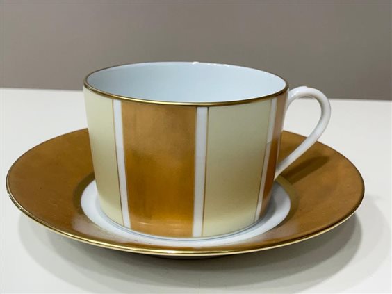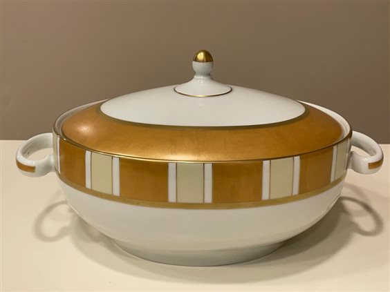 Haviland, da oltre un secolo e mezzo, conferma la sua leadership sul mondo della porcellana francese. Il successo della porcellana Haviland passa attraverso la seduzione che ha saputo suscitare. Le più grandi corti del mondo, i più grandi capi di stato non hanno potuto, neppure loro, resistere all'attrattiva di questa porcellana d'eccezione. SERVIZIO PIATTI HAVILAND SERENGETI IN PORCELLANA LIMOGES BIANCO CON DECORI ORO COMPOSTO DA 62 PEZZI DI CUI SERVIZIO TAVOLA 41 PEZZI: -12 PIATTI PIANI (28cm) -12 PIATTI FONDI (24cm) -12 PIATTI FRUTTA (22cm) -1 ZUPPIERA (h16cm x 30cm) -1 RAVIERA (23.5cm) -1 INSALATIERA (24.5cm) -1 PIATTO TONDO (31.5cm) -1 PIATTO OVALE (40cm) SERVIZIO CAFFE' 15 PEZZI: -1 CAFFETTIERA (h20cm x 23cm) -1 ZUCCHERIERA (h9.5cm x 11.5cm) -1 LATTIERA (h6cm x 13cm) -12 TAZZE CAFFE'(h6cm) CON PIATTINO (12cm) SERVIZIO THE 6 PEZZI: 6 TAZZE THE (h5.5cm) CON PIATTINO (14.5cm)
