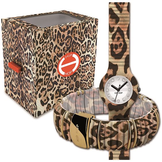 HIP HOP SPECIAL BOX, OROLOGIO + BRACCIALE COORDINATI. OROLOGIO CON CRISTALLI SWAROVSKI NEL QUADRANTE E BRACCIALE CON INSERTI DORATI.