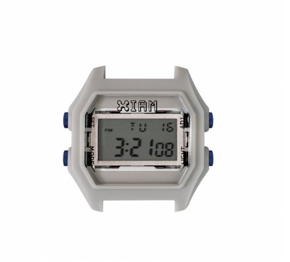 Cassa medium in policarbonato di colore grigio con pulsanti blu