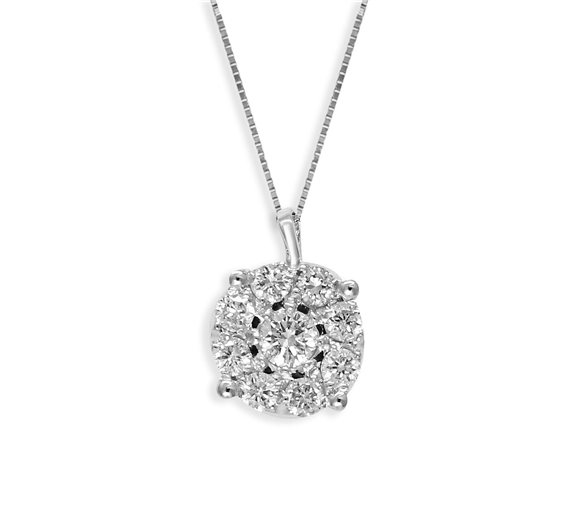 Collana con ciondolo coronet in oro bianco 18 Kt con diamanti B 0.23 F - VS1 - Gr 1.70.