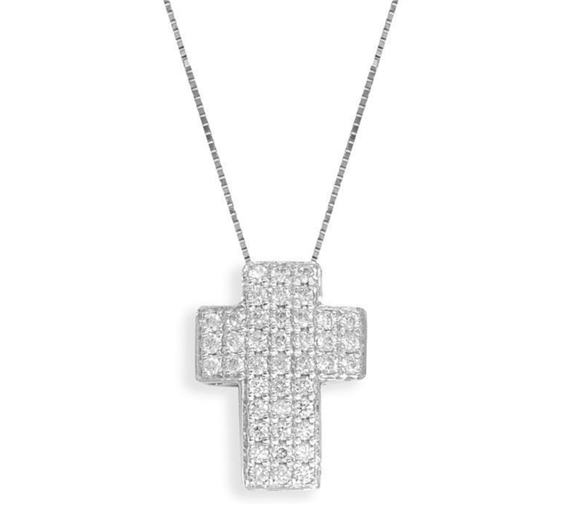 Collana in oro bianco 18 Kt con ciondolo con croce di diamanti B 0.52 F – VS1 – Gr 3.00.