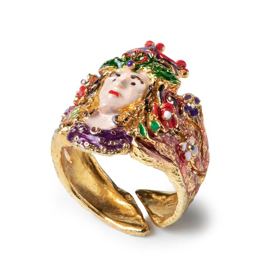 Anello in argento 925% ideato e realizzato da Isola Bella. Un accessorio unico nel suo genere e ricco di fascino, l'anello Isola Bella è impreziosito da un disegno realizzato con smalto a caldo rappresentante i Mori, in questo caso la Regina, ed è disponibile in una misura universale. Le teste di Moro sono simbolo di un’antica leggenda siciliana di amore e passione che ha nutrito la mentre degli artigiani dell’isola, che oggi creano veri e propri capolavori che raffigurano le teste dei due innamorati: una donna palermitana e un Moro.