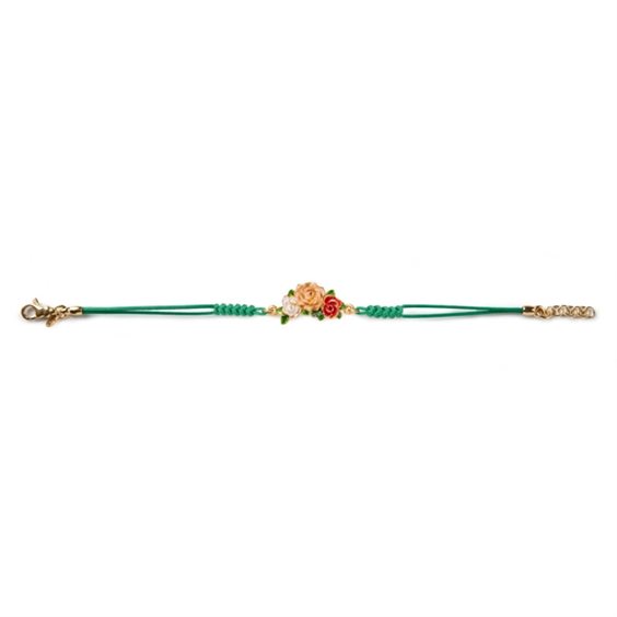 Bracciale in argento 925, placcato oro, smalti e cordino in tessuto annodato a mano anallergico con chiusura estendibile. Simbolo di purezza, di amore eterno o di passione, le rose sono il fiore più regalato. Il loro significato varia anche a seconda del numero e dall’abbinamento di colori: rose rosse e bianche insieme significano “unità”.