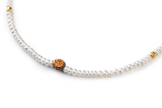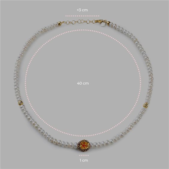 Perle luminose e iridescenti, evocano l'essenza dell'oceano, mentre una stella marina emerge aggiungendo un tocco di luce, lunghezza collana 45 + 3 centimetri.