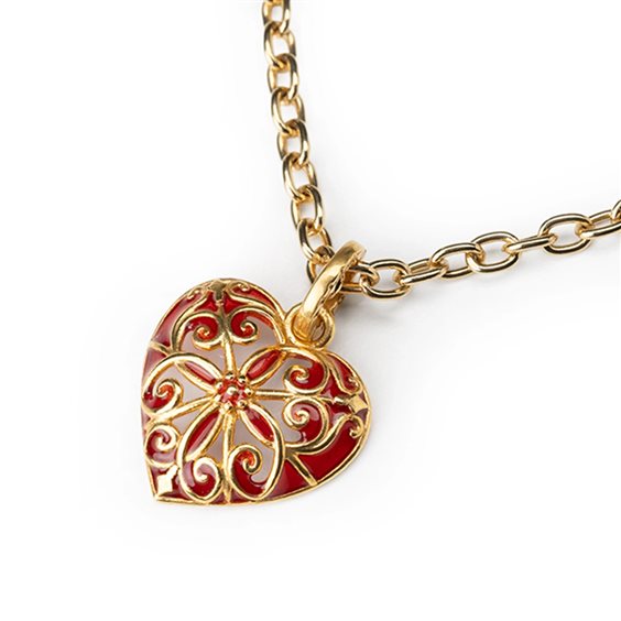 Una collana simbolo di amore eterno in un intreccio di linee sinuose. Lunghezza collana 50 centimetri, misure cuore 2,12 x 2,40 centimetri, chiusura a moschettone.