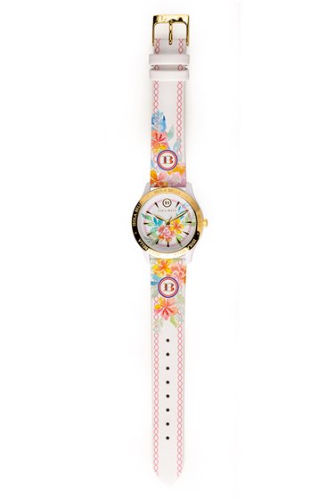 La natura esplode nei colori vivaci e, al tempo stesso, delicatissimi di questo orologio. Una distesa di foglie e fiori che ispirano subito gioia, allegria e sorrisi. Orologio analogico con cassa in plastica bianco e dorato lucido. Quadrante decorato. Movimento Epson Y121E – 5 atm. Diametro Quadrante 34 mm Materiale Cinturino PU pelle sintetica Anse 16 mm Colore Cassa Oro lucido Materiale cassa Alloy Atmosfere 3 atm