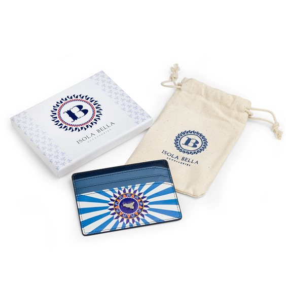 Il nostro nuovo porta carte Sicilia, un accessorio essenziale per il tuo stile di vita quotidiano. Realizzato con materiali di alta qualità, questo porta carte è dotato di un design elegante e funzionale. La predominanza del blu simbolo del cielo e del mare che circondano l'isola, e la raggiera al cui interno esplode il simbolo della Sicilia, aggiungono un tocco di orgoglio e appartenenza a questa meravigliosa terra. È dotato di tre tasche sul fronte e tre sul retro per contenere carte di credito e documenti, e una tasca più grande centrale per le banconote. Perfetto per chi cerca un accessorio unico e di alta qualità, che si distingue dagli altri mantenendo tutto in ordine e al sicuro. Il modello 20001379 Isola Bella misura 8 x 10 centimetri.