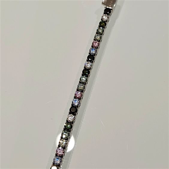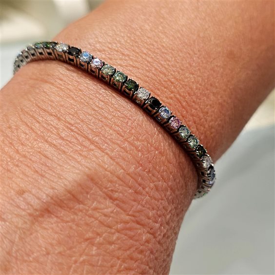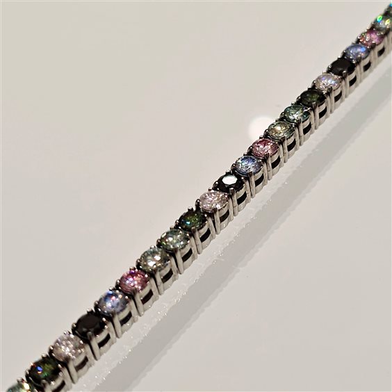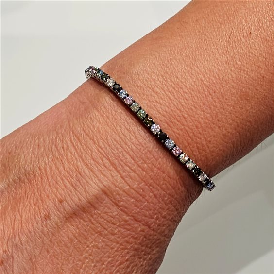 Bracciale tennis in titanio e diamanti Lab Grown ct. 4,80 multicolor. Misura regolabile con aggiunta di maglie