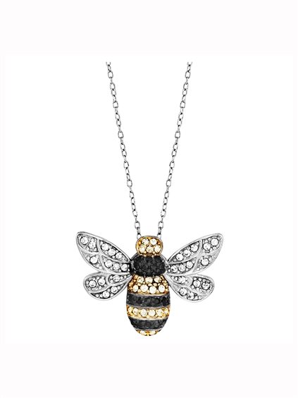 Collana donna , argento 925 , girocollo maglia rolò cm 45 , ape pendente cm 1.5 , zirconi bianchi , neri e gialli incastonati con griffe. Scatola e garanzia originali.