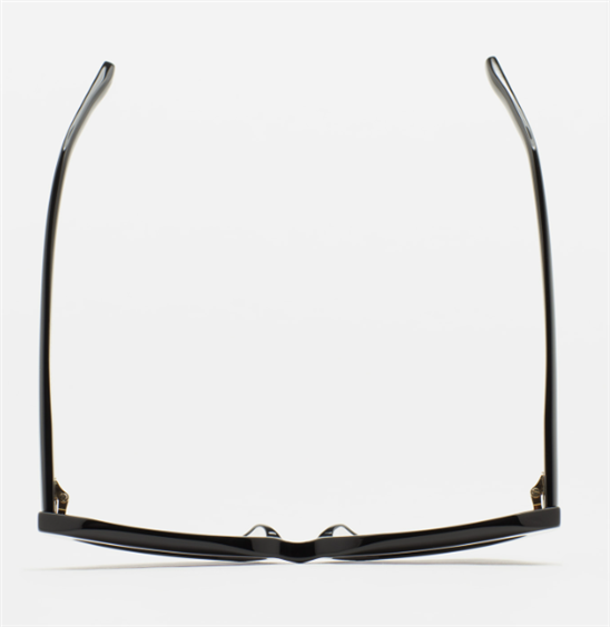 Occhiali da sole cat-eye con fresatura superiore. Volumi misurati, impatto garantito. Frontale e aste in acetato nero. Lente nera degradante base 2 con protezione UV al 100% e trattamento antiriflesso. Categoria lente 2. Plaquettes in acetato incorporate. Fatto a mano