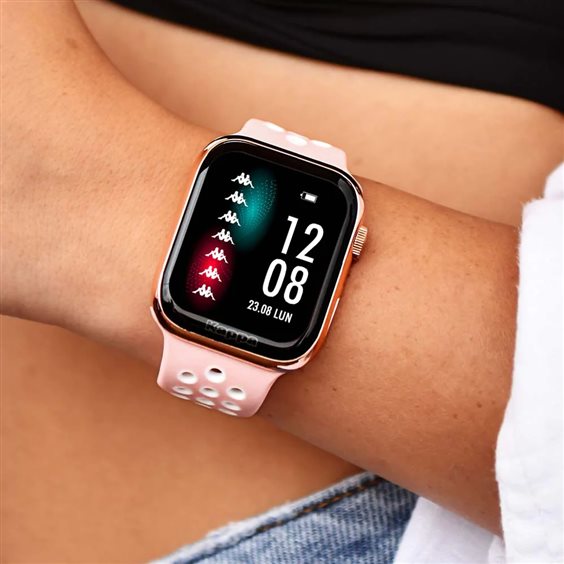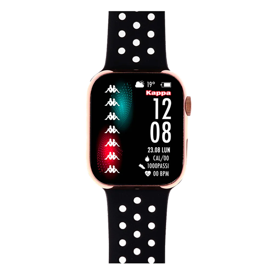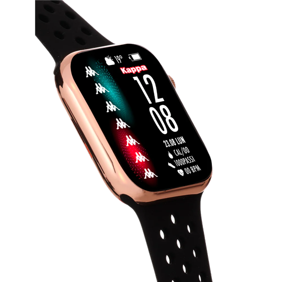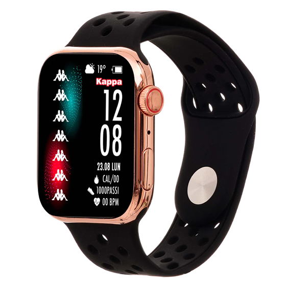 Lo Smartwatch Kappa Prime goldrose e nero KW-P004 è la rivoluzione del nuovo anno di casa Kappa. Con il suo impianto audio di ultima generazione potrai ascoltare la tua musica, effettuare e ricevere chiamate parlando in vivavoce con una nitidezza di suono mai vista prima! Il doppio cinturino (rosa e nero) in dotazione lo rende perfetto per ogni outfit. Smartwatch Kappa Prime KW-P004 ha una cassa in alluminio satinato goldrose da 45 mm. I due cinturini, nelle versioni rosa e nero, sono in morbido silicone. Il display touch offre 4 diverse watch faces, delle quali una totalmente personalizzabile, selezionabili in funzione delle proprie preferenze e/o attività. Lo Smartwatch Kappa Prime goldrose e nero KW-P004 è Water Resistant 3ATM (IP67); dispone di un’interfaccia per BT Calling (chiamate in vivavoce tramite smartwatch), battito cardiaco, sveglia e orologio, ascolto della musica, cronometro, controllo sedentarietà, contapassi, controllo fotocamera, monitoraggio sonno, diverse sessioni di allenamento, ossigenazione del sangue, torcia, monitoraggio calorie bruciate, giochi, telefono, messaggi, meteo e applicazioni social (Facebook, Whatsapp, Instagram). Il dispositivo è inoltre compatibile con i sistemi Android e iOs tramite l’app Fitpro (bluetooth). La ricarica richiede un’ora di tempo; il caricatore magnete è incluso nella confezione. Il Kappa Prime goldrose e nero KW-P004 è la pietra miliare della seconda generazione smartwatch di Casa Kappa. Design di ultimo grido; cassa satinata per un look sempre al top; le performances più alte di sempre ed un audio vivavoce sconvolgente.