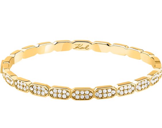 BRACCIALE KARL LAGERFELD CRYSTALS - KLAYC64 - Genere : Donna, Misura: 6x5, Colore: Gold, Fashion, Modello: Rigido, Materiale: Acciaio, Cristalli, Peso: 16,000 gr, Diametro Perle: 1.6mm mm, Colore pietra: Bianco, Certificato di autenticità: Sì, Confezione: Originale Karl Lagerfeld