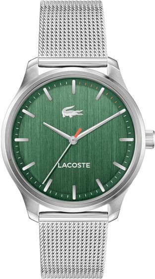 Lacoste orologio con movimento al quarzo a tre lancette da uomo collezione LISBON con cinturino in acciaio inossidabile modello maglia milano. Movimento al quarzo a 3 lancette, STILE CLASSICO E PRECISO, Lacoste Lisbon propone un design pulito e minimal con tre lancette per una lettura dell’ora chiara e affidabile Cassa in acciaio da 42 mm, classica e contemporanea, cassa in acciaio lucido per un look essenziale, ottimo ogni giorno Quadrante verde con finitura spazzolata verticale e indici a bastoncino, quadrante elegante con texture verticale e logo Lacoste per uno stile ordinato Bracciale milanese in acciaio, leggero e contemporaneo, bracciale in maglia d’acciaio lucida per un look raffinato e comodo ogni giorno Resistente all’acqua 5 ATM, eleganza per ogni occasione, ottimale contro gli schizzi; lisbon è il compagno ottimo dal lavoro al weekend