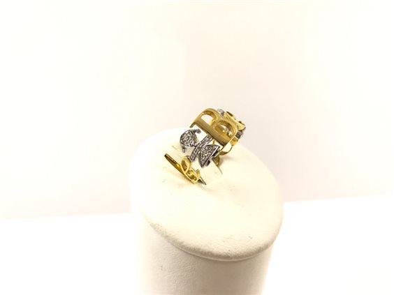 Anello 'Ghirlanda' in oro giallo e bianco 18kt con pavè di brillanti su Femminuccia. Totale 0.06 ct.