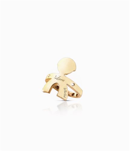 Anello Abbracci bimbo in oro giallo 9 Kt con due diamanti e foderatura a cuoricini