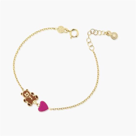 Le Bebè Prime Gioie Bracciale Toy pmg 072, Bracciale in oro giallo 9kt con orsetto e cuore in smalto colorato., Lunghezza 14 - 16 cm