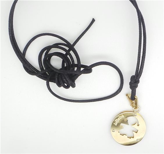 Pendente in oro giallo 9 kt, diametro 1,60 cm, femminuccia con possiblità di incisione