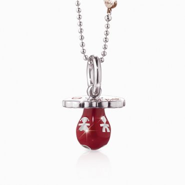 collana donna in attesa le bebè in argento raffigurante un ciuccio ciondolo con ciuccio smaltato rosso della collezione suonamore in argento 925%. lunghezza catena 100 centimetri. gioiello accompagnato da scatola, garanzia e shopper. consigliamo di regalare questa collana nelle seguenti occasioni: gravidanza materiali utilizzati il girocollo le bebè è composto esclusivamente da: argento