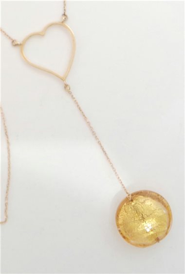 collana in oro rosa 18 kt, con cuore e murrina veneziana colore oro, chiusura a moschettone, lunghezza 40,3cm
