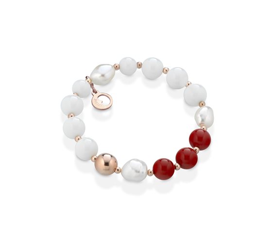 BRACCIALE CON PERLE FW, PASTA DI CORALLO ED ELEMENTI IN ARGENTO.