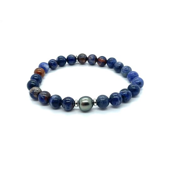 BRACCIALE CON ELEMENTI IN ARGENTO 925% E LABRADORITE BLU.